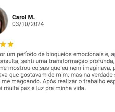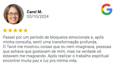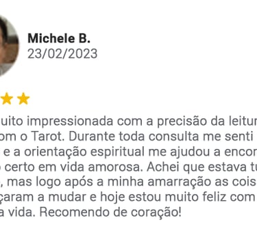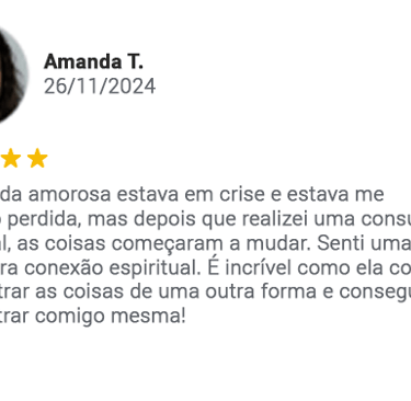Cada consulta espiritual é única, considerando todos os aspectos da sua vida, como amor, trabalho, saúde e espiritualidade. Ao realizar uma leitura detalhada de tarot, búzios ou cartas, buscaremos juntos as melhores soluções e orientações, sempre respeitando sua individualidade e necessidades pessoais. Com a minha orientação, vamos abrir caminhos e alinhar sua energia para resultados harmoniosos, trazendo paz, clareza e transformação para sua vida. Aqui, mais do que respostas, você encontrará a verdadeira conexão consigo mesmo. Agende sua consulta e inicie o seu processo de cura e autoconhecimento.